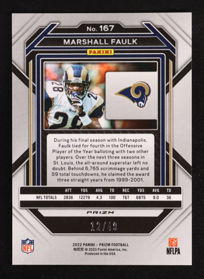 Marshall Faulk 2022 Panini Prizm Prizms Purple Power #167 #12/49