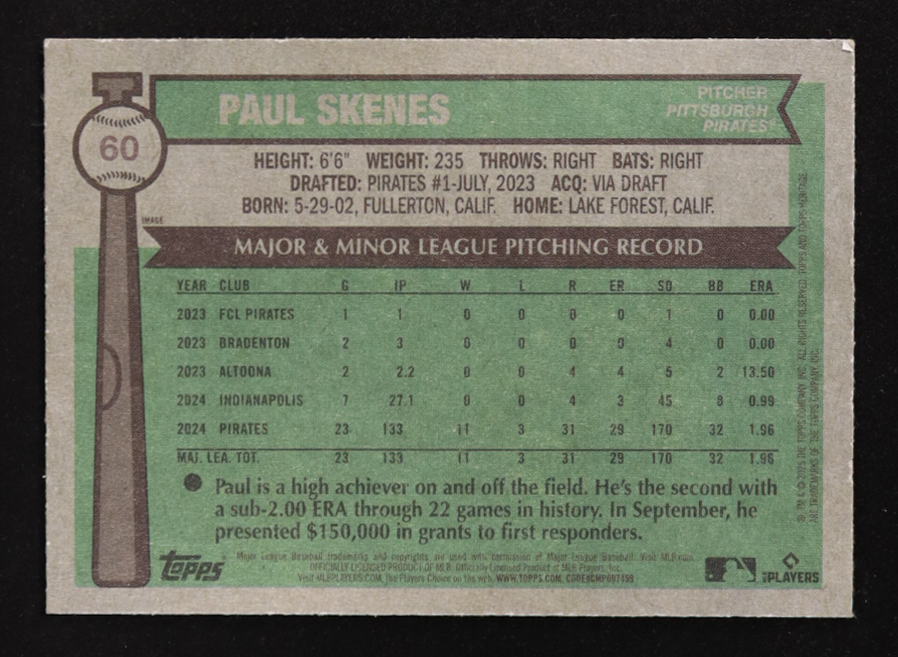 Paul Skenes 2025 Topps Heritage Image Variations #60