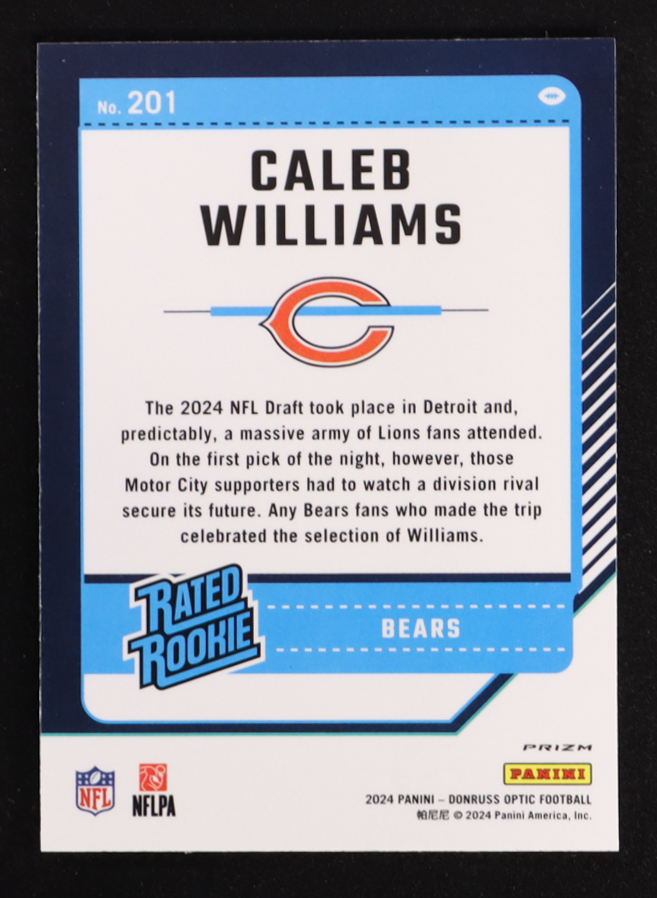 Caleb Williams 2024 Donruss Optic Blue Hyper #201 RC