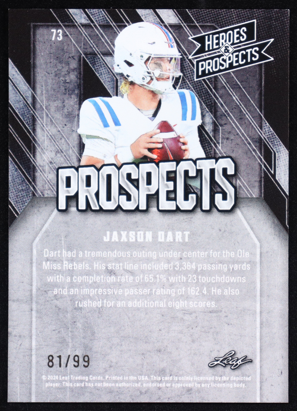Jaxson Dart 2024 Leaf Heroes & Prospects Prospects Silver #73 #81/99