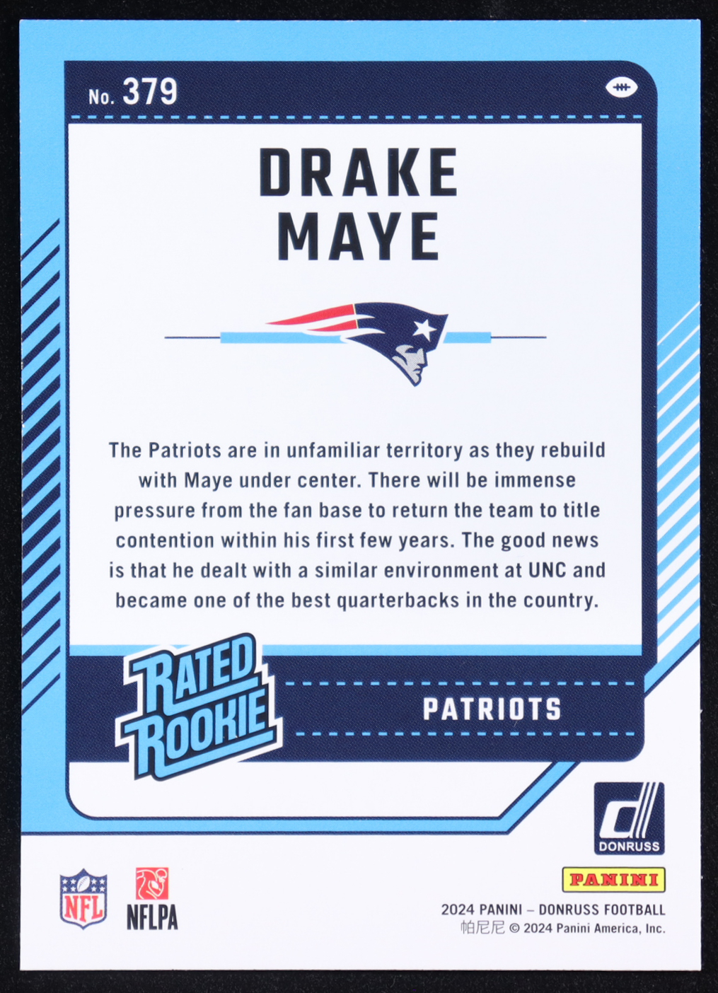 Drake Maye 2024 Donruss #379 RR RC