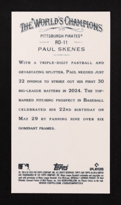Paul Skenes 2024 Topps Allen and Ginter Mini Rookie Design Variations #RD11 RC