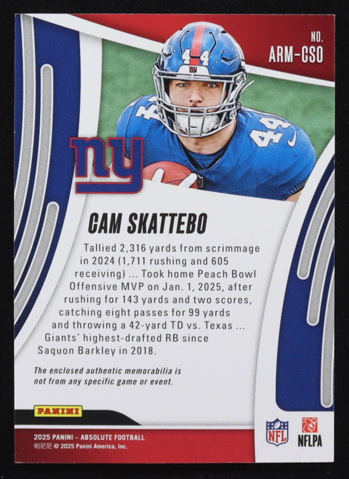 Cam Skattebo 2025 Absolute Absolute Rookie Materials #4 RC