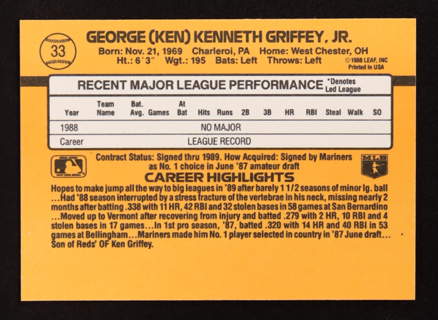 Ken Griffey Jr. 1989 Donruss #33 RC