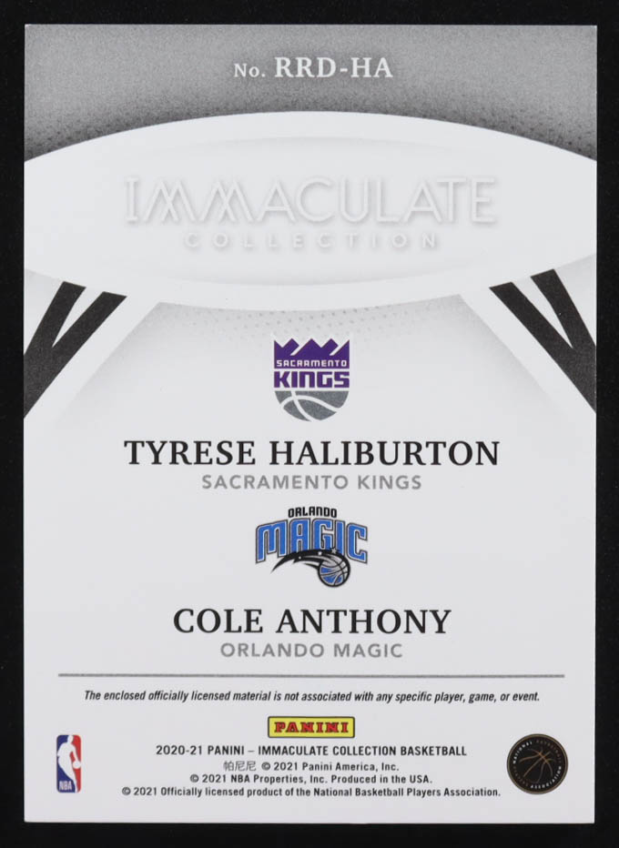 Cole Anthony / Tyrese Haliburton 2020-21 Immaculate Collection Remarkable Rookie Jerseys Dual Red #15 RC #23/25