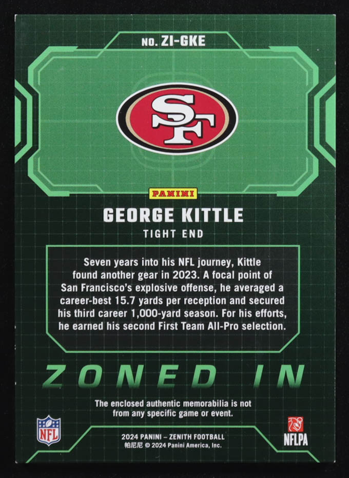 George Kittle 2024 Zenith Zoned In Jerseys #16