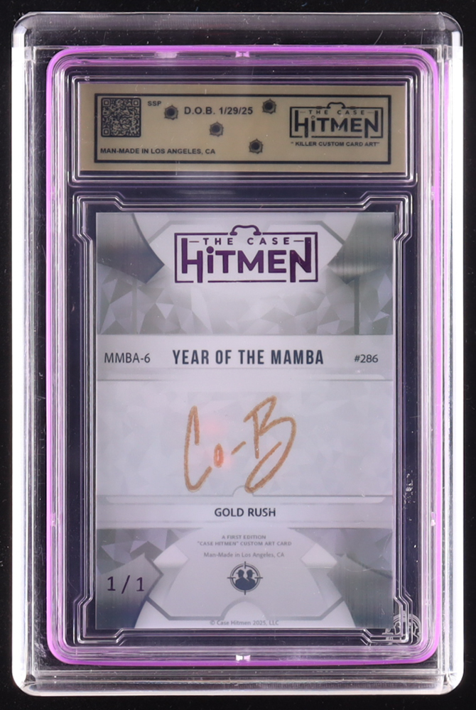 Kobe Bryant "Year of the Mamba" The Case Hitmen Custom Art Card MMBA-6 Gold Rush #286 #1/1 with (2) Custom Coins & Display Box