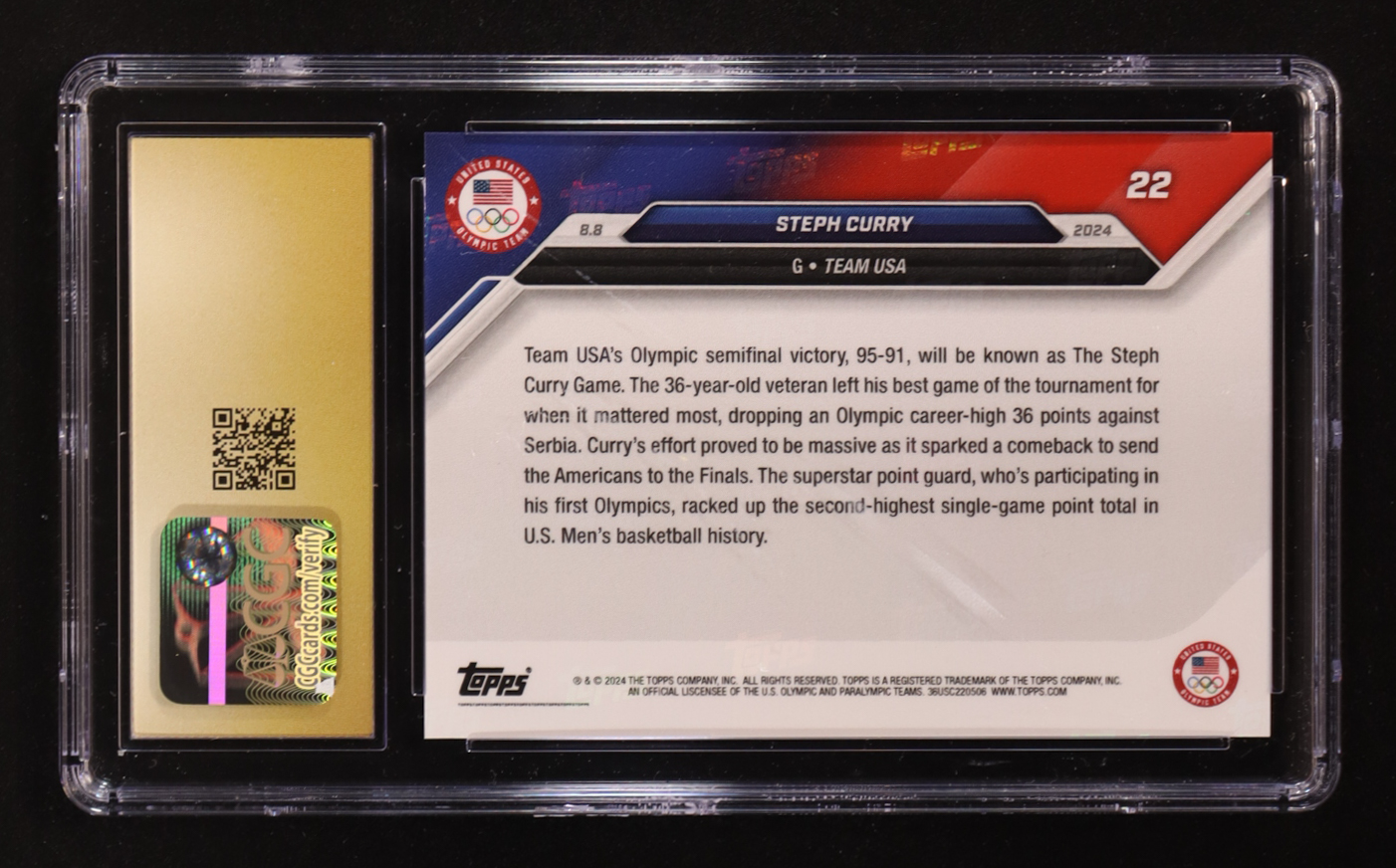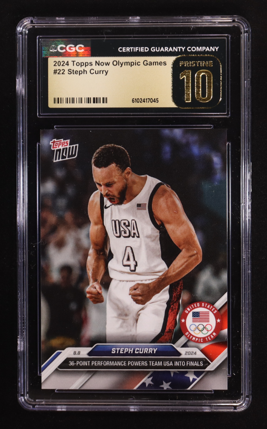 Stephen Curry 2024 Topps Now Olympic Games #22 (CGC 10 | Pristine Black Label)