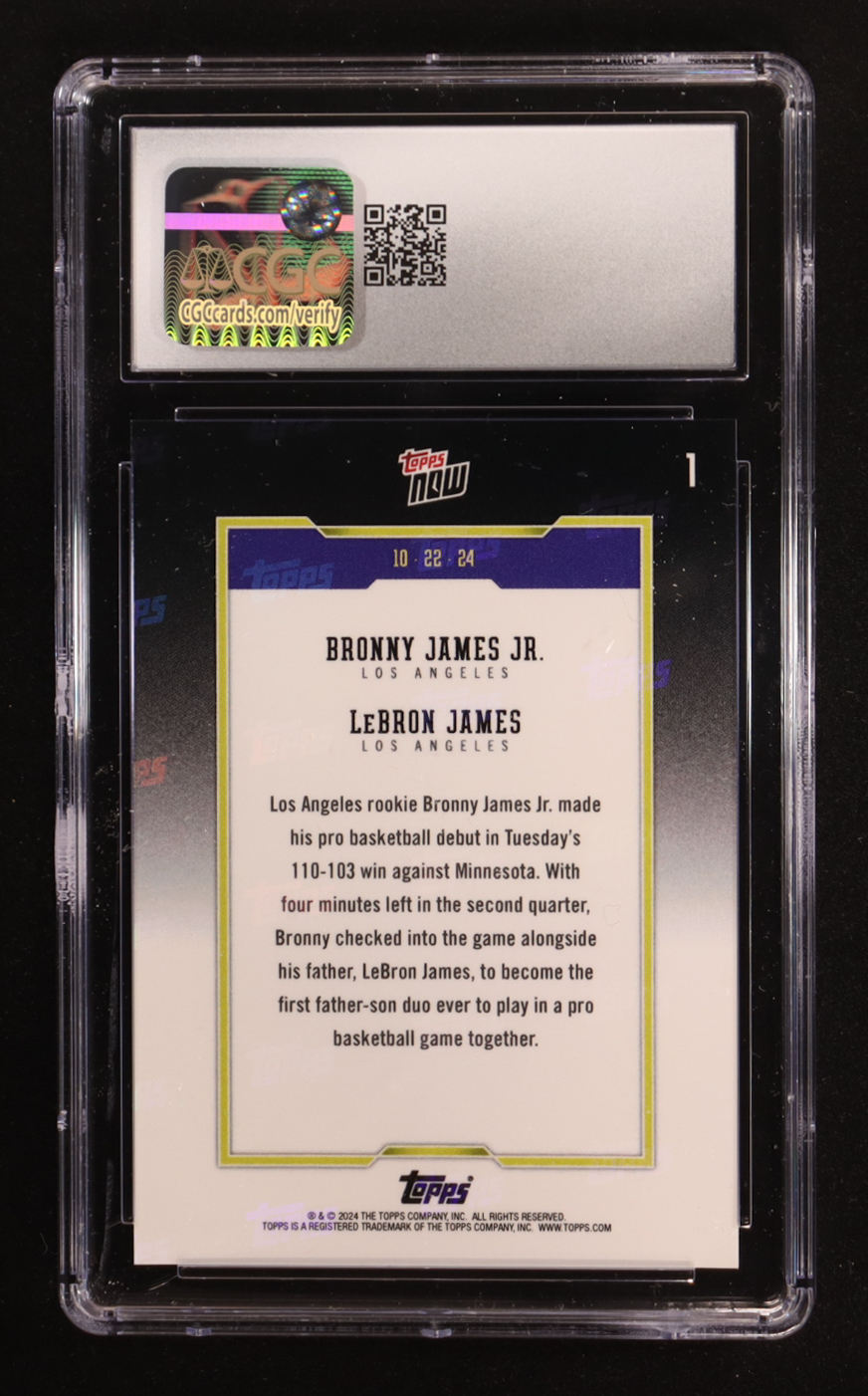 Bronny James Jr. RC / LeBron James 2024-25 Topps Now #1 (CGC 10)