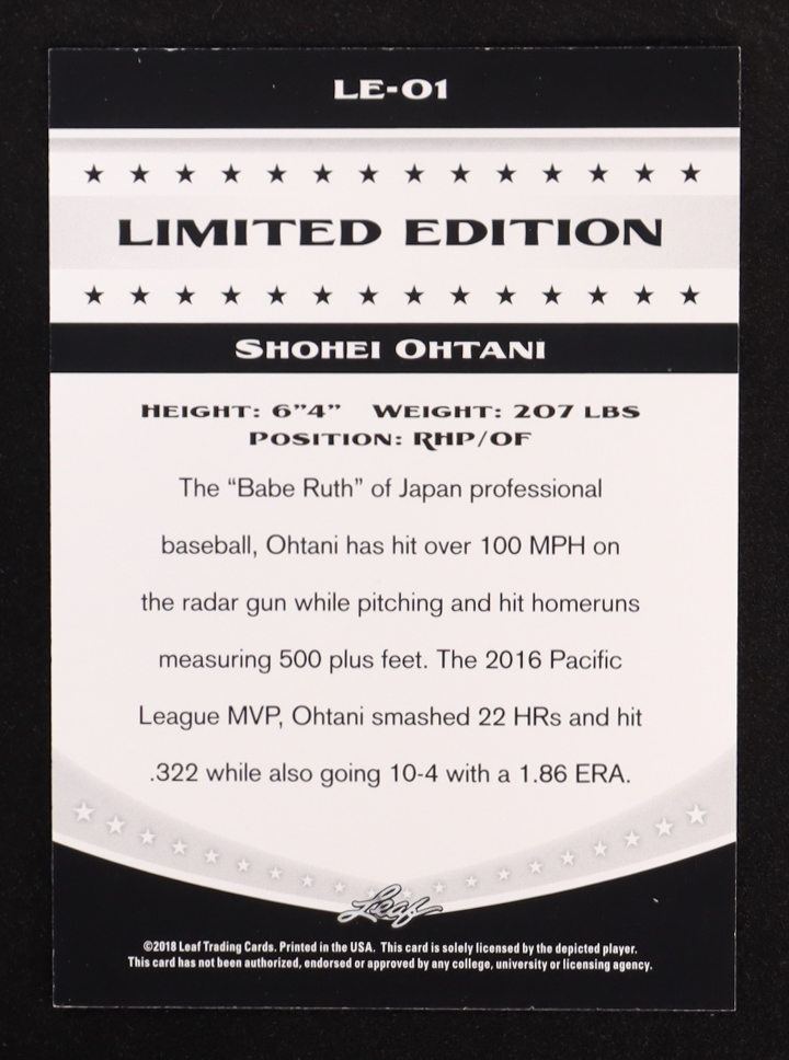 Shohei Ohtani 2018 Leaf Ohtani Limited Edition #LE01 RC