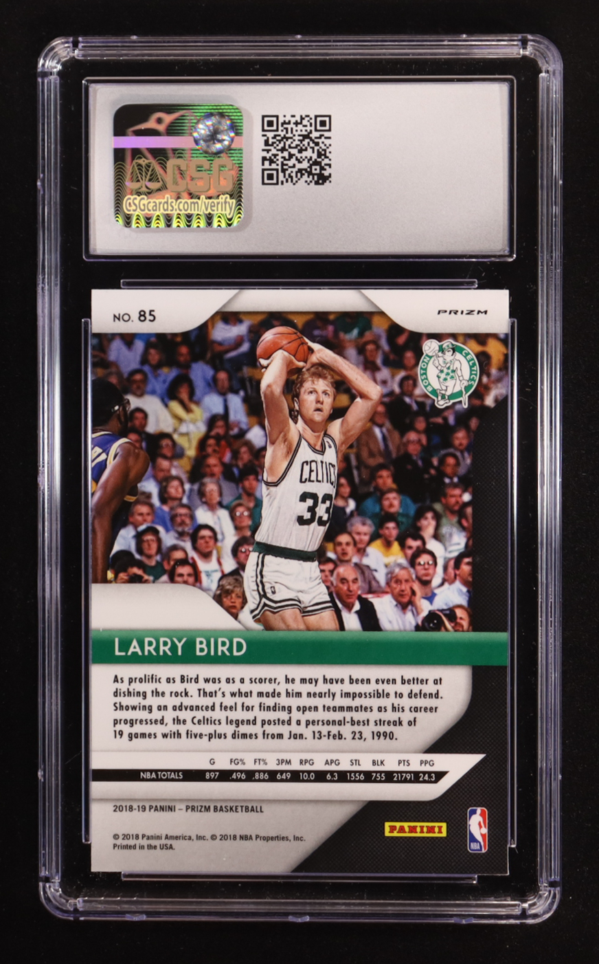 Larry Bird 2018-19 Panini Prizm Prizms Pink Ice #85 (CSG 10)