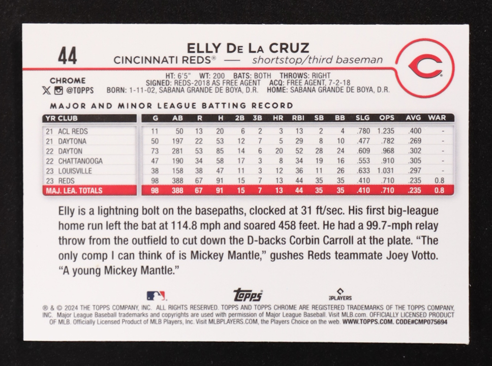 Elly De La Cruz 2024 Topps Chrome X-Fractors #44 RC