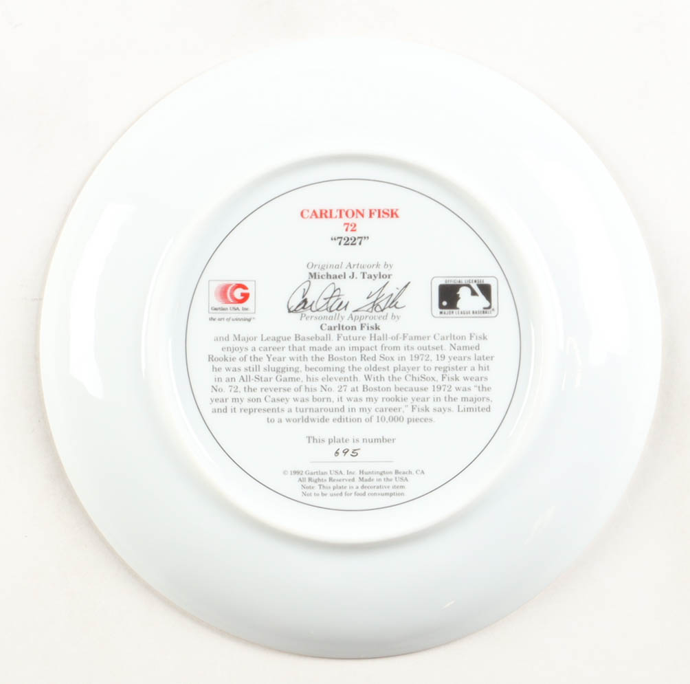 Carlton Fisk (Boston Red Sox, HOF) commemorative plate The plate is limited edition and has been numbered #695/10,000.
