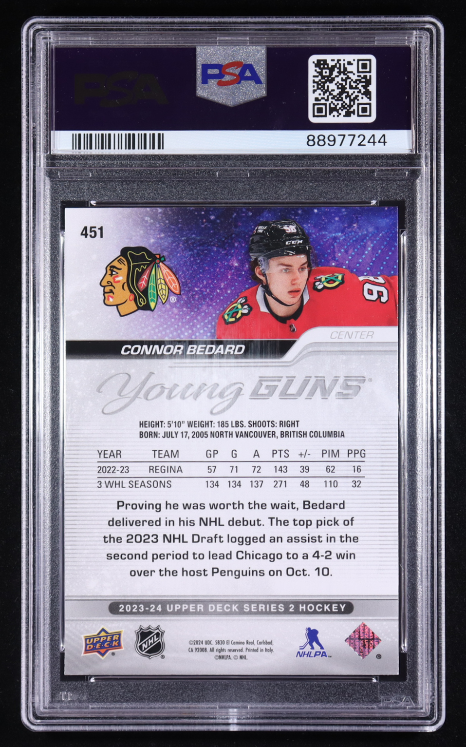 Connor Bedard 2023-24 Upper Deck #451 YG RC (PSA 9)