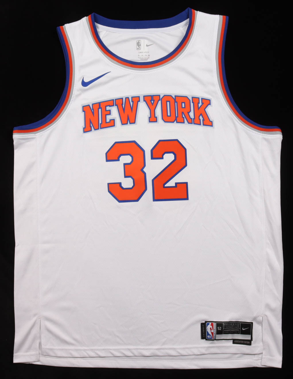 Nike authentic jersey with everything pressed on, size 52. Hand-signed by Karl-Anthony Towns (New York Knicks).