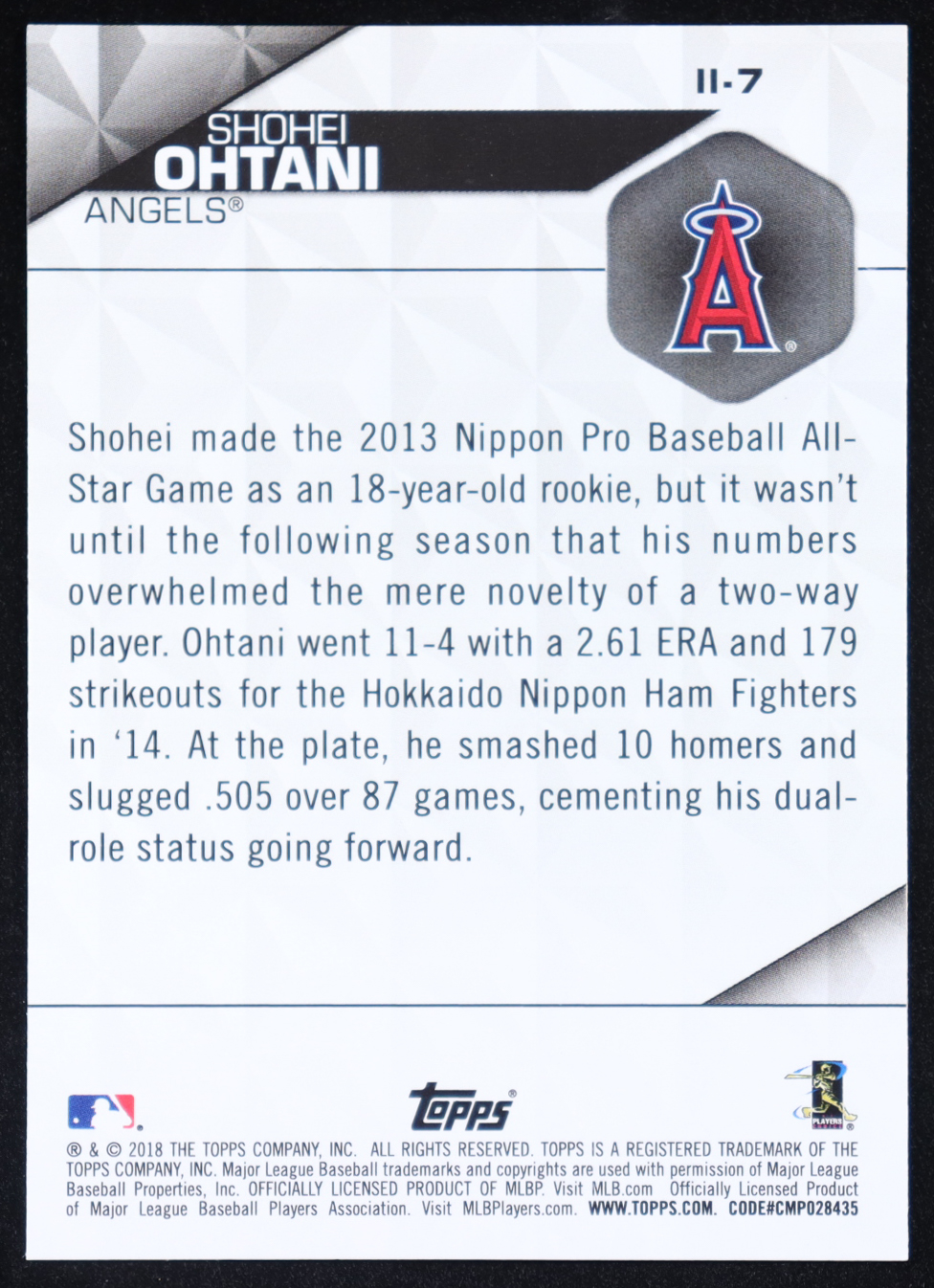 Shohei Ohtani 2018 Topps Instant Impact #II7 RC
