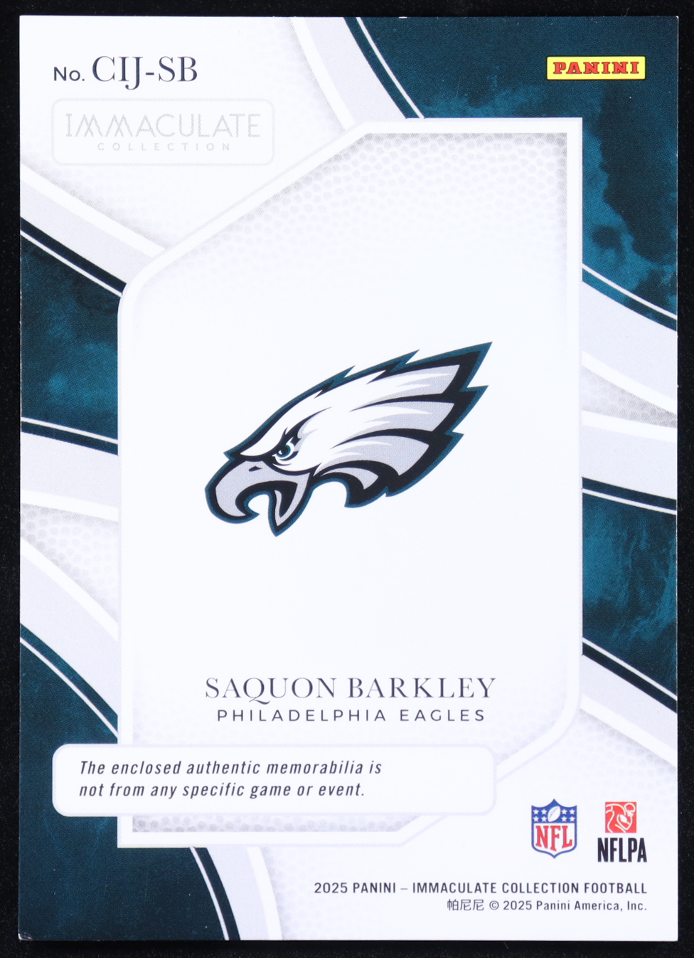 Saquon Barkley 2025 Immaculate Collection Clearly Immaculate Jerseys Prime #16 #39/49