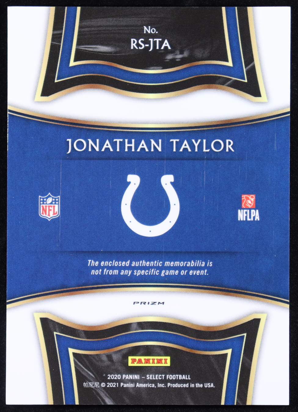 Jonathan Taylor 2020 Select Rookie Swatches Prizm Red #16 RC