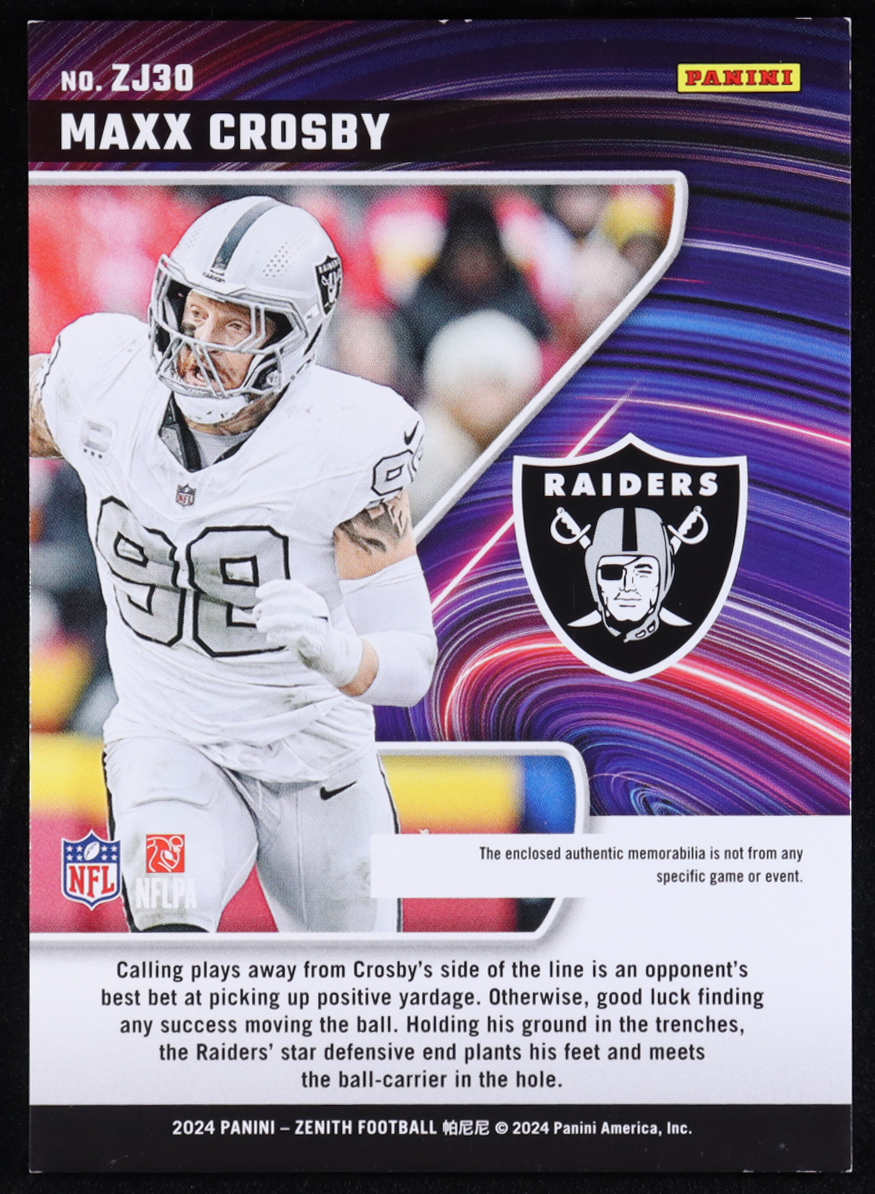 Maxx Crosby 2024 Zenith Z Jersey Laundry Tage Brand Logo #30 #1/1