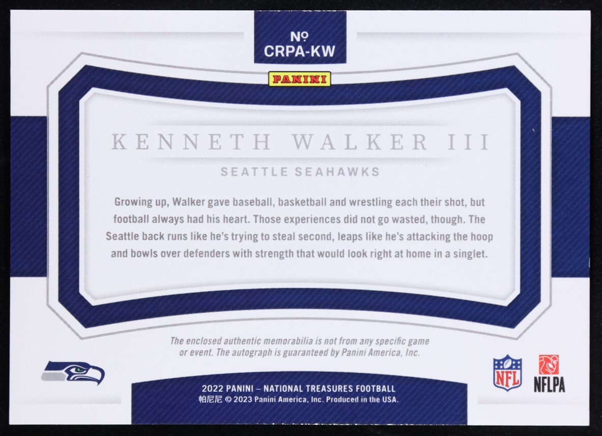 Kenneth Walker III 2022 Panini National Treasures Crossover Rookie Patch Autographs #8 RC #61/99