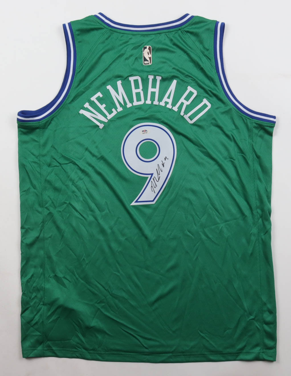 Nike jersey with everything pressed on, size 52. Hand-signed by Ryan Nembhard (Dallas Mavericks).