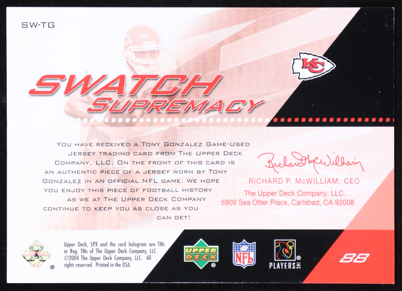 Tony Gonzalez 2004 SPx Swatch Supremacy #SWTG