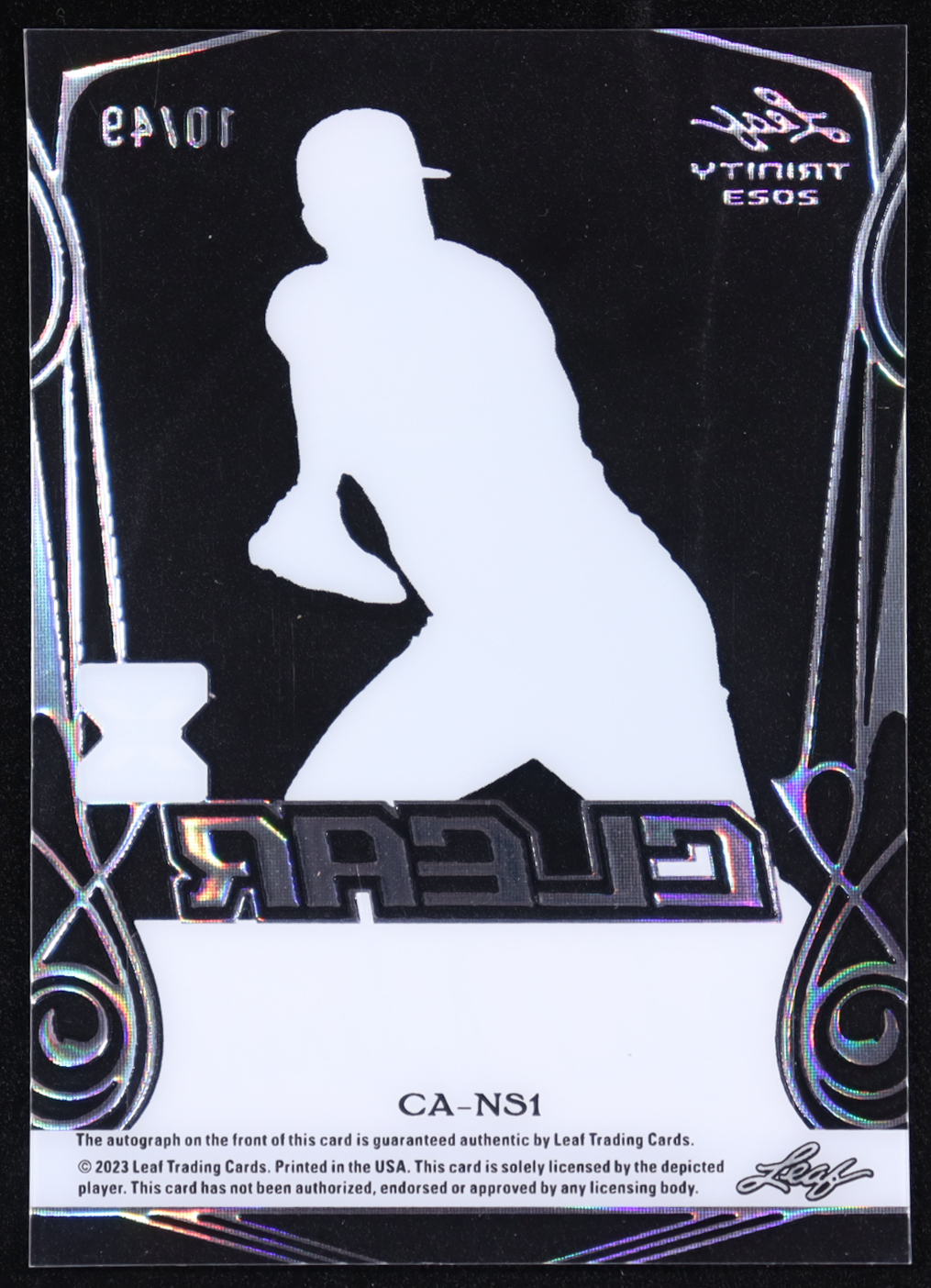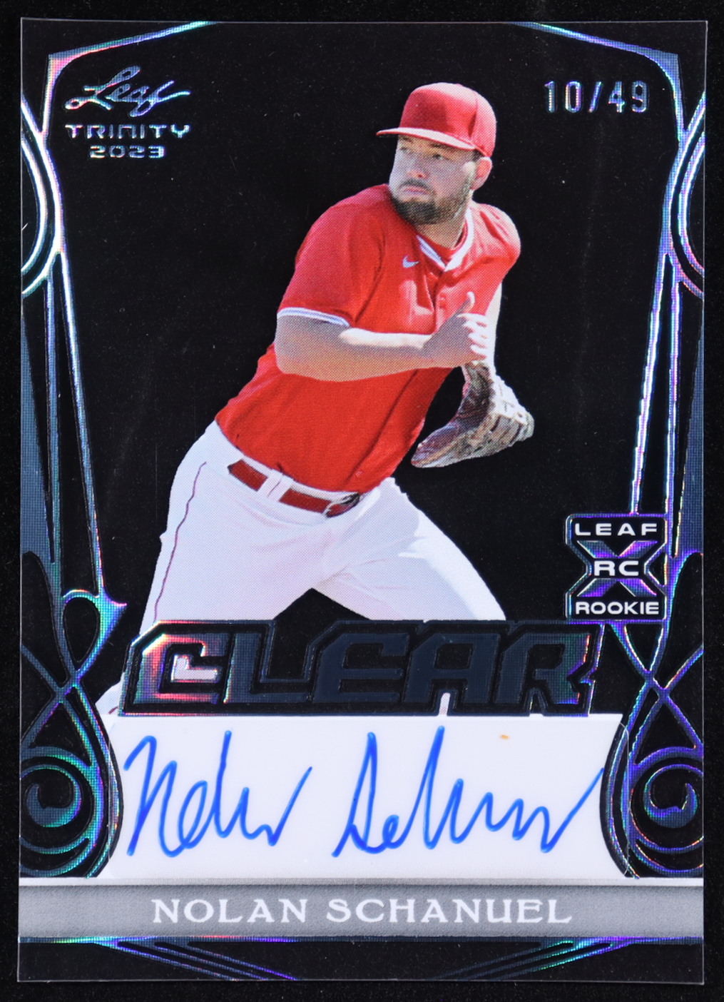 Nolan Schanuel 2023 Leaf Trinity Platinum Foil Clear Signatures #CANS1 #10/49 RC