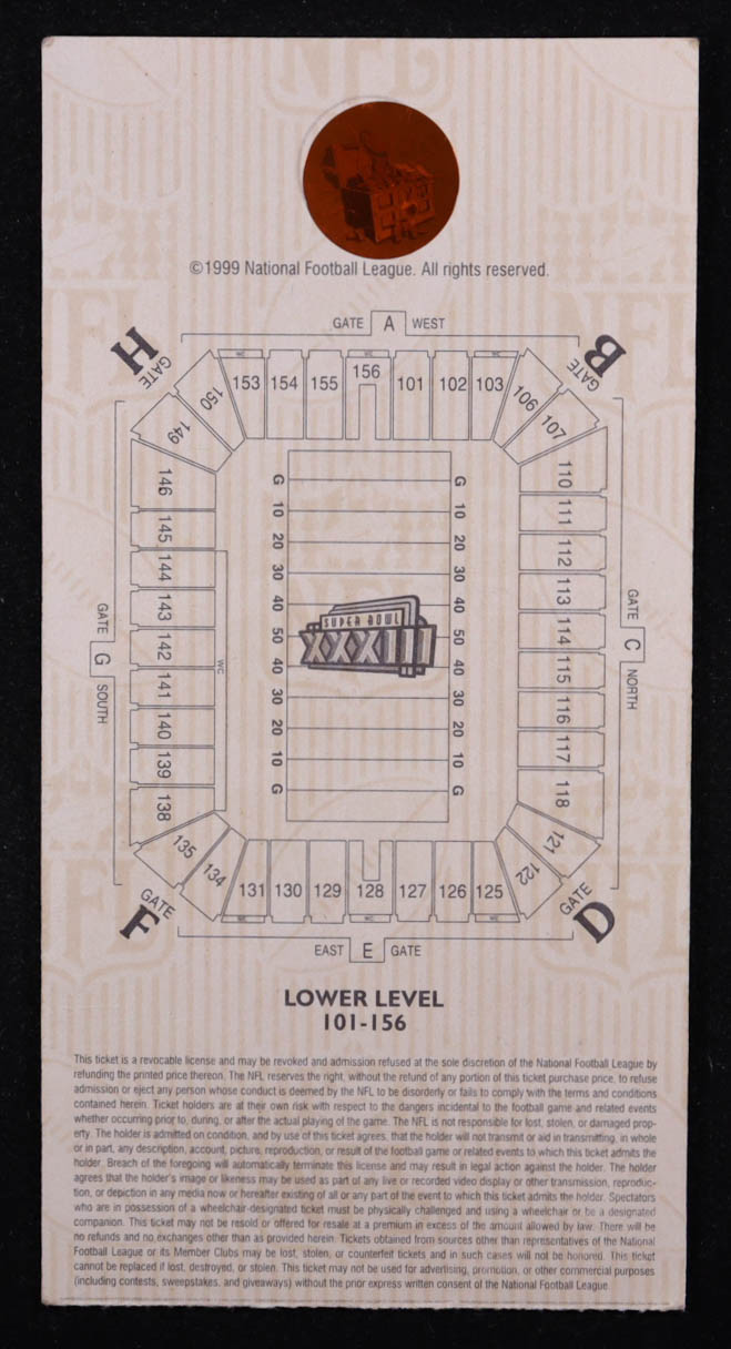 1999 Super Bowl XXXIII Original Game Ticket