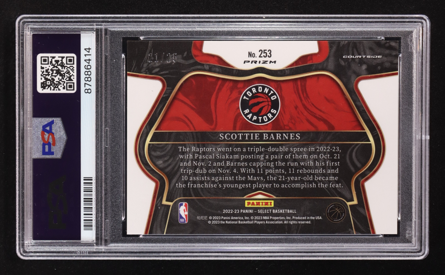Scottie Barnes 2022-23 Select Prizms Tie-Dye #253 Donruss #21/25 RC (PSA 10)