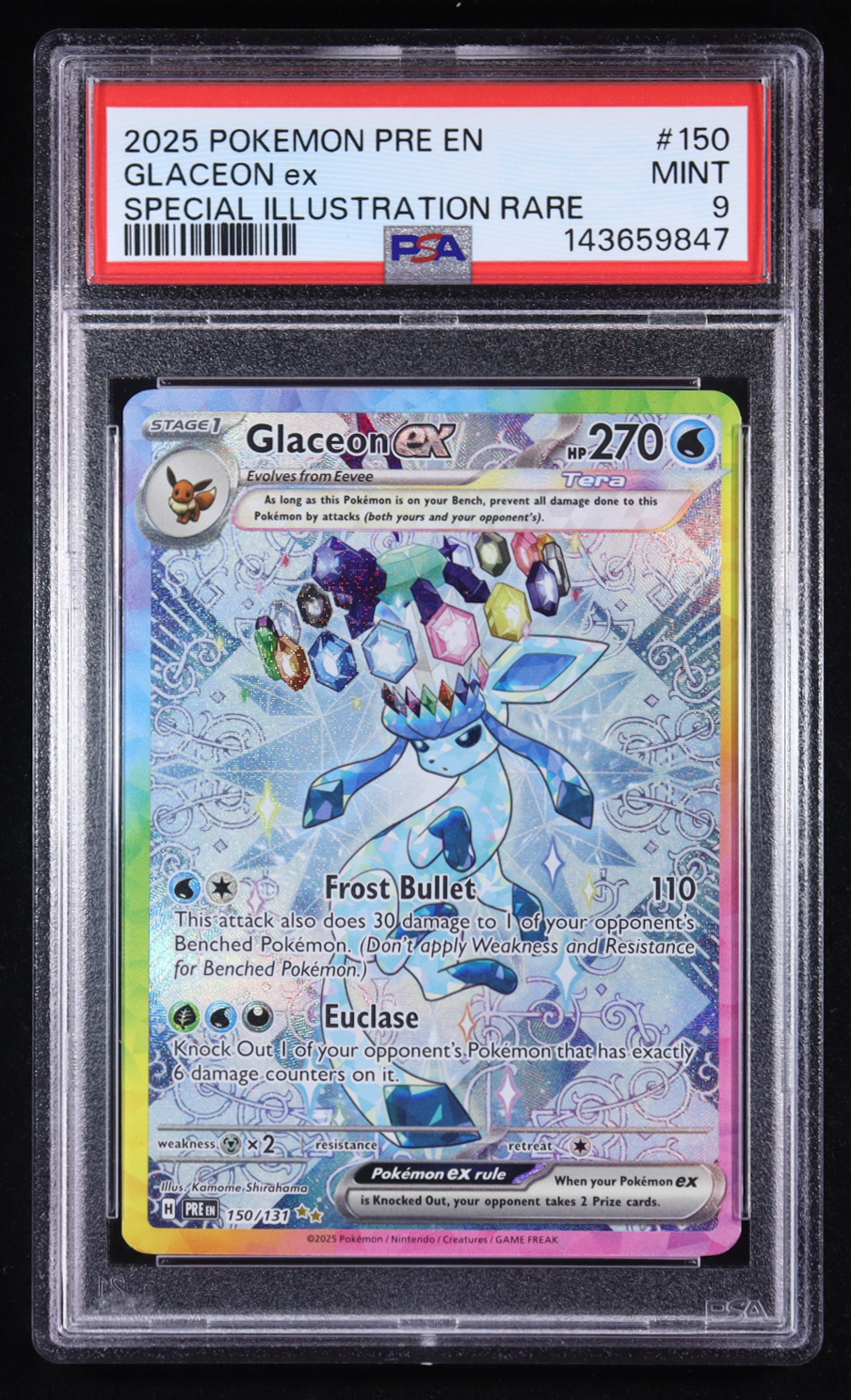 Glaceon ex 2025 Pokemon TCG Scarlet & Violet Prismatic Evolutions #150 (PSA 9)