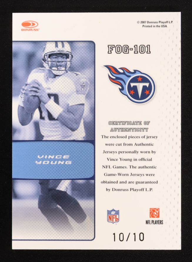 Vince Young 2007 Leaf Certified Materials Fabric of the Game Prime #101 #10/10