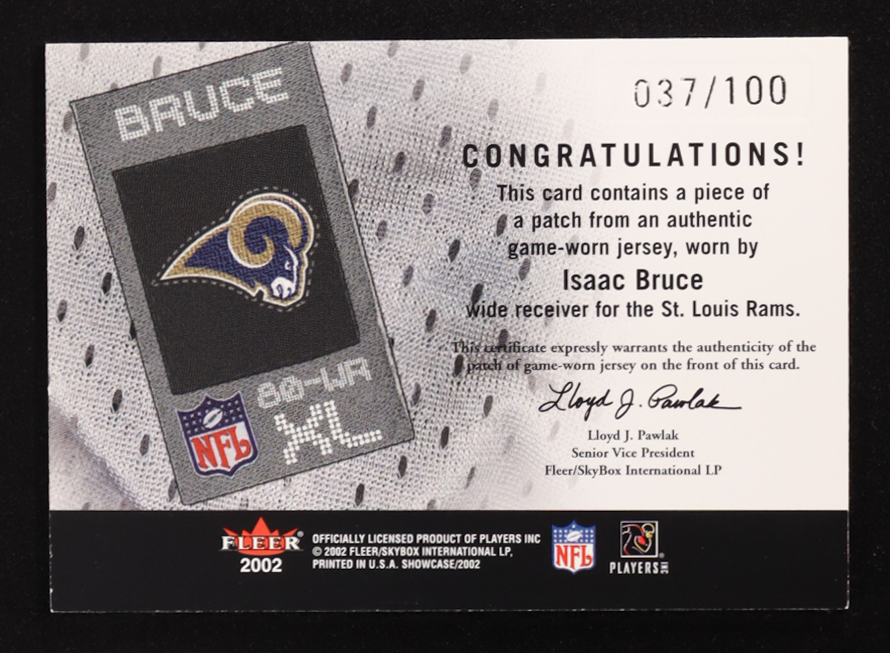 Isaac Bruce 2002 Fleer Showcase Football's Best Memorabilia Silver Patches #FB7 #037/100