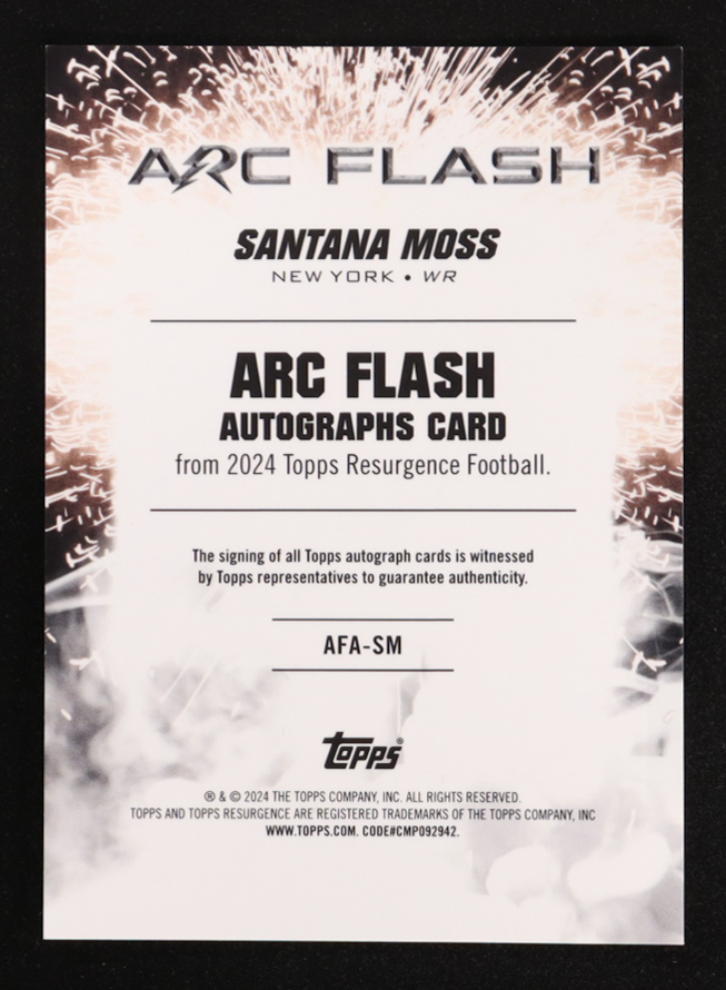 Santana Moss 2024 Topps Resurgence Arc Flash Autographs Blue Surge #AFASM #02/99
