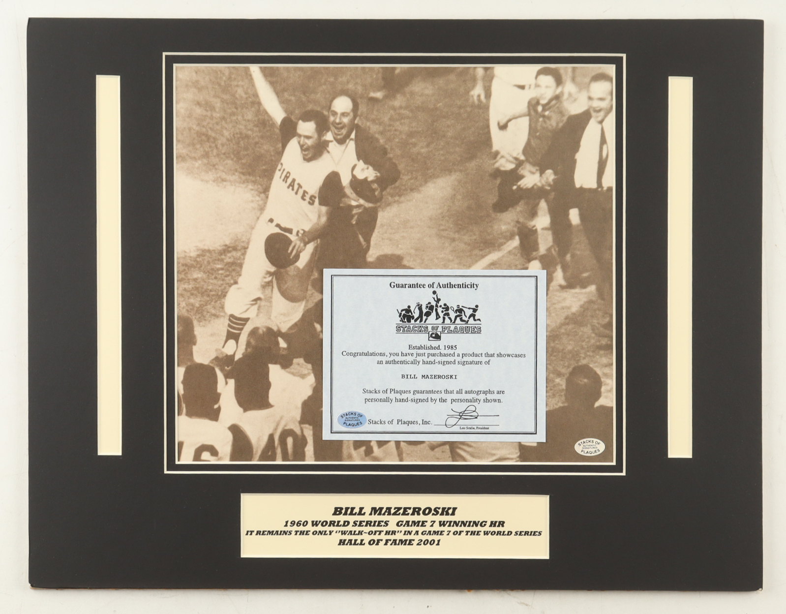 Bill Mazeroski Signed Pirates 14x18 Custom Matted Photo Display (Stacks of Plaques)