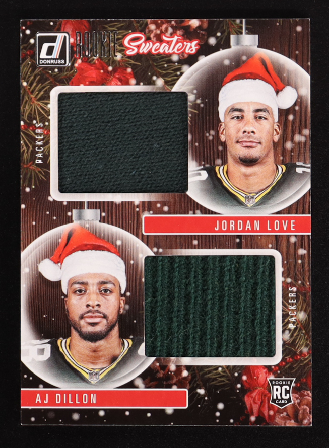 Jordan Love / A.J. Dillon 2020 Donruss Rookie Holiday Sweater Dual #2 RC