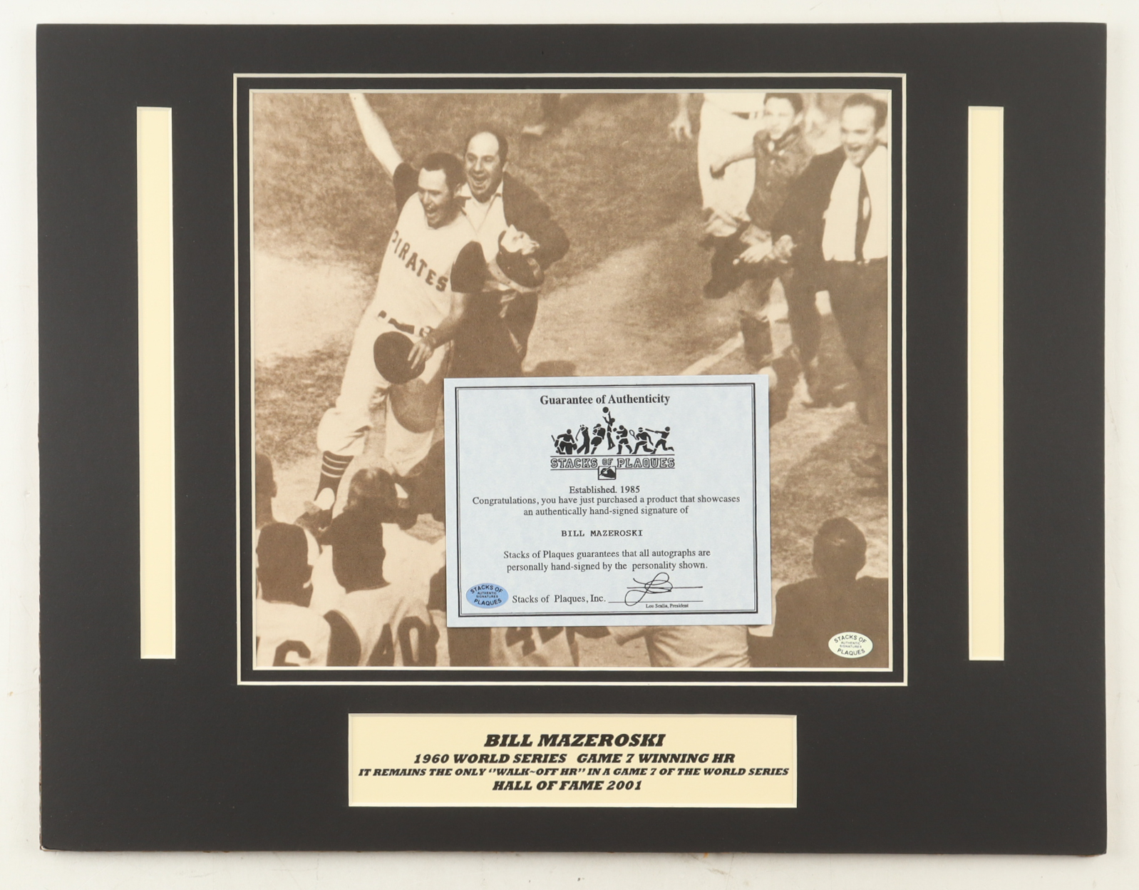 Bill Mazeroski Signed Pirates 14x18 Custom Matted Photo Display (Stacks of Plaques)
