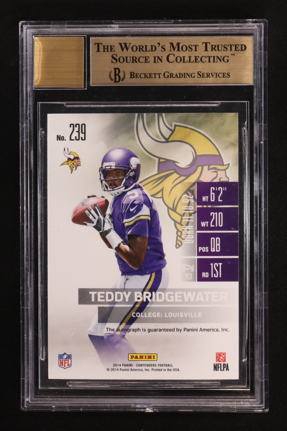 Teddy Bridgewater 2014 Panini Contenders Playoff Ticket #239A Autograph RC #56/99 (BGS 9.5 | Autograph Graded BGS 10)