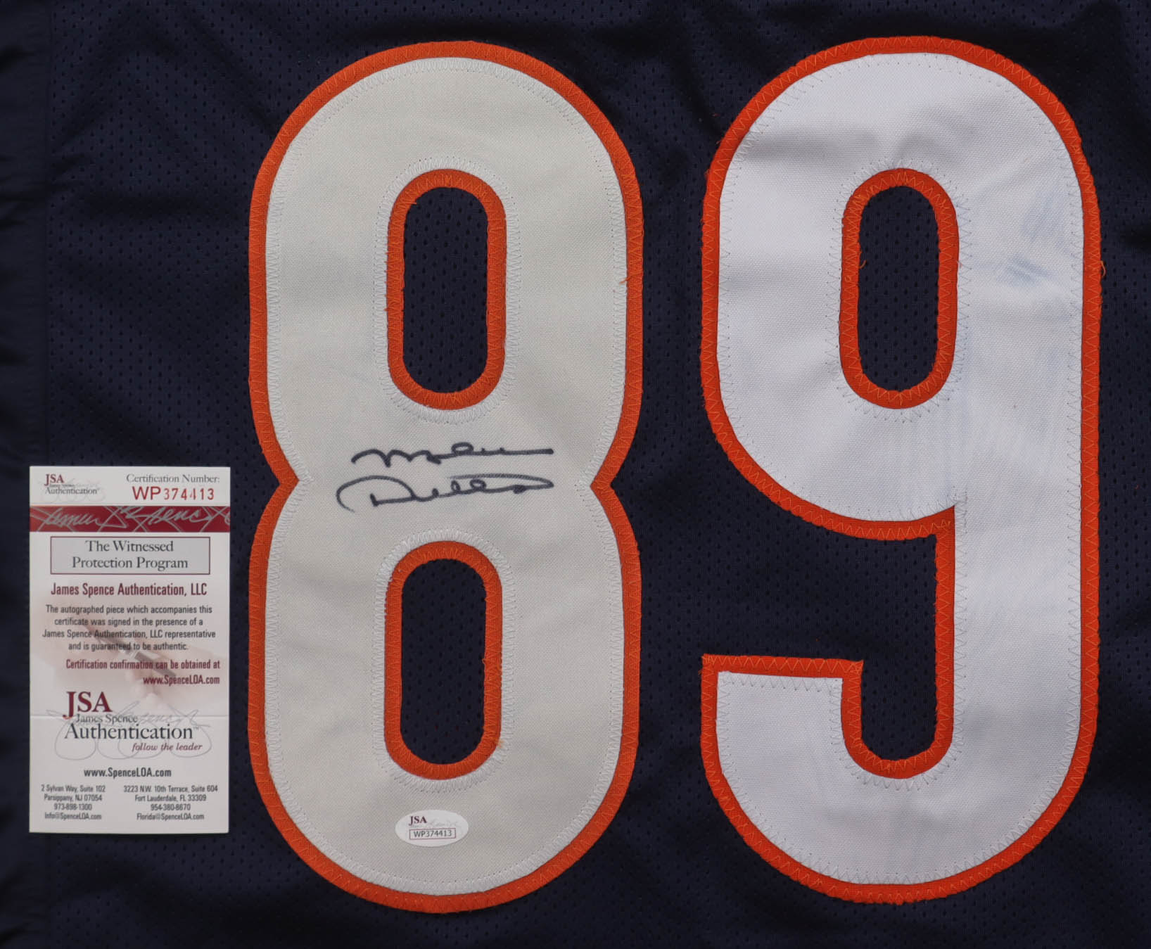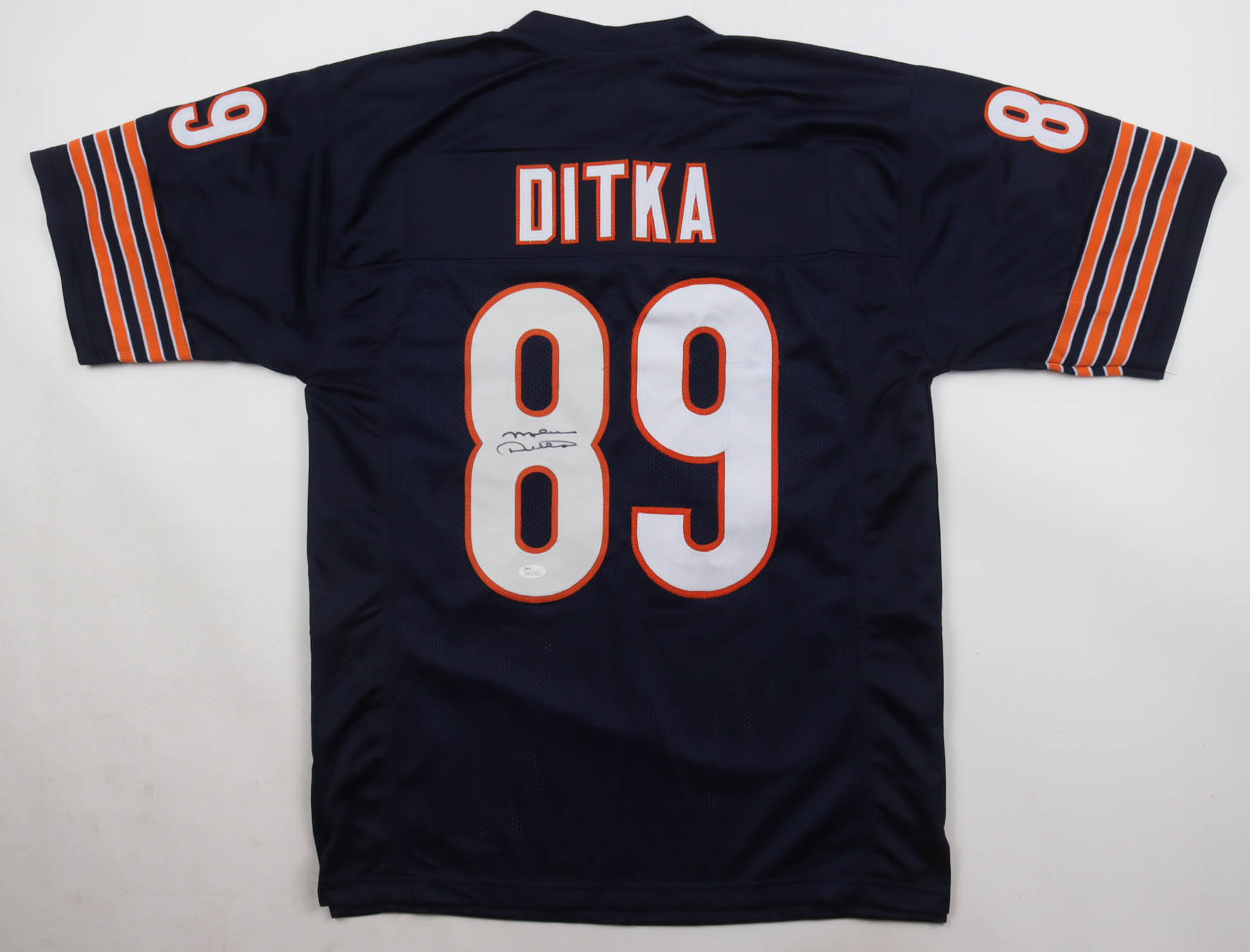 Custom jersey with everything sewn on, size XL. Hand-signed by Mike Ditka (HOF). Please note, glue is visible through the jersey numbers.