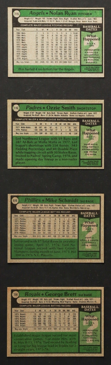 1979 Topps Baseball Complete Set of (726) Cards with Ozzie Smith #116 RC, Pete Rose #650, Nolan Ryan #115, George Brett #330