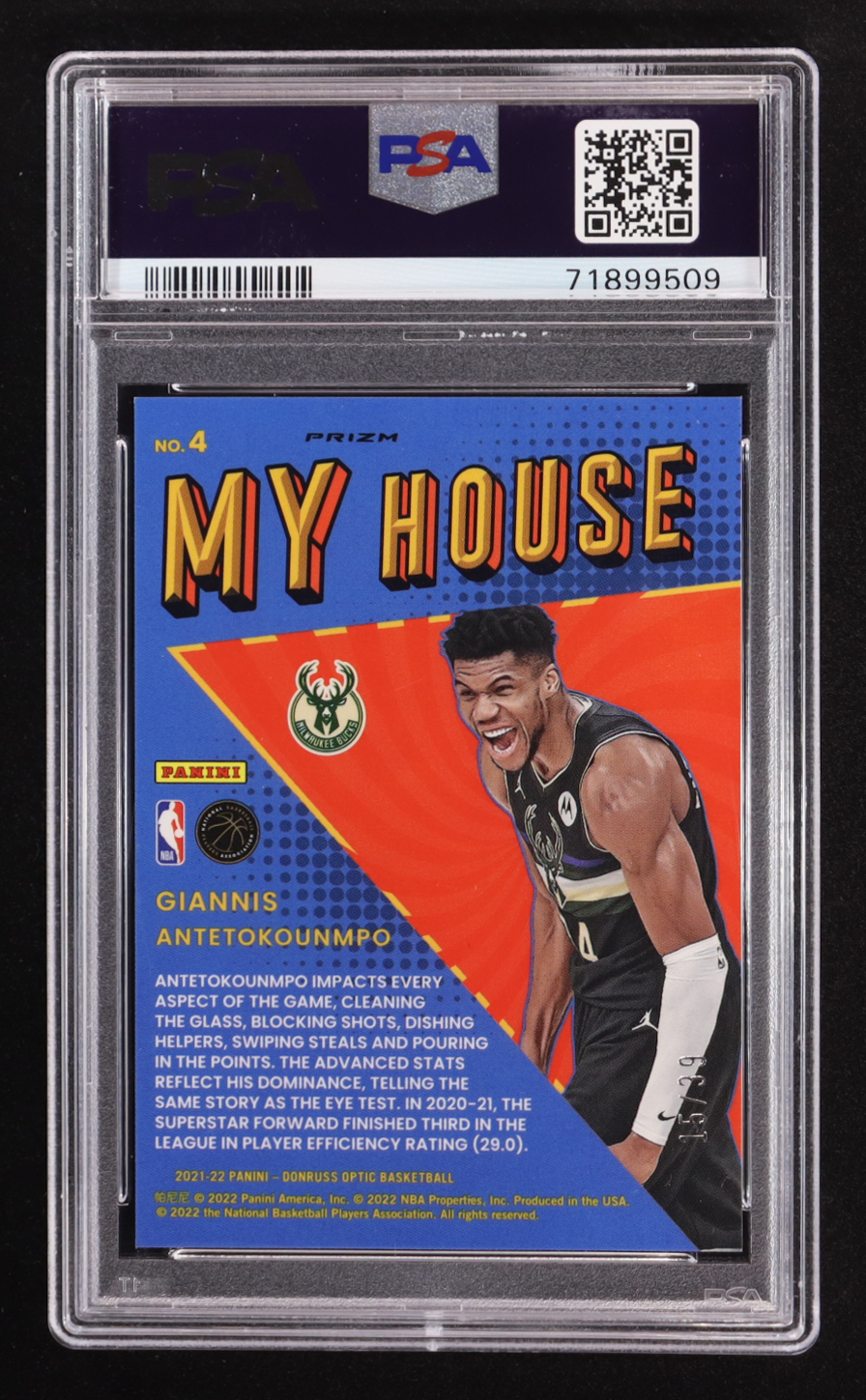 Giannis Antetokounmpo 2021-22 Donruss Optic My House Orange #4 #15/39 (PSA 9)