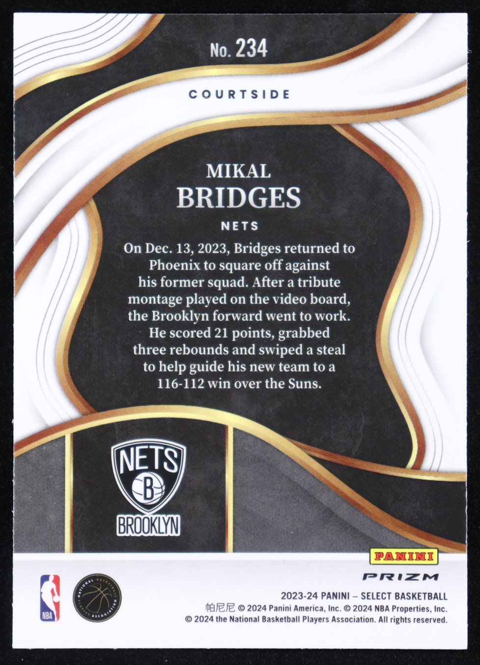 Mikal Bridges 2023-24 Select Prizms Zebra #234