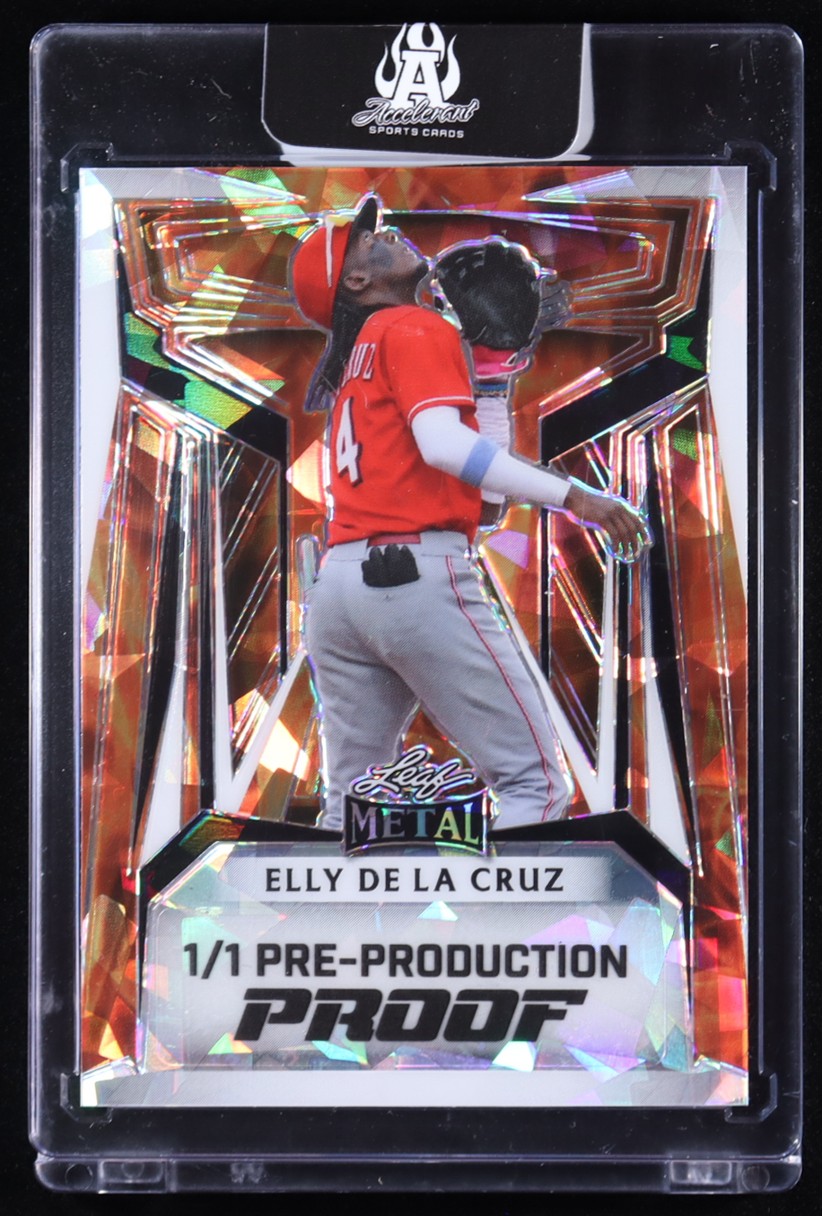 Elly De La Cruz 2023 Leaf Metal Pre-Production Proof Crystal Orange RC #1/1