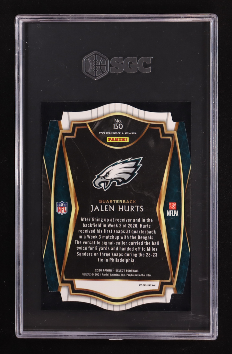 Jalen Hurts 2020 Select Prizm Blue Die Cut #150 RC (SGC 9.5)