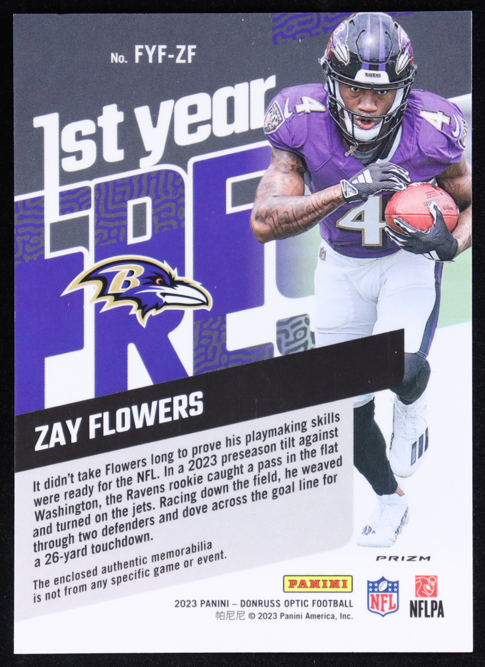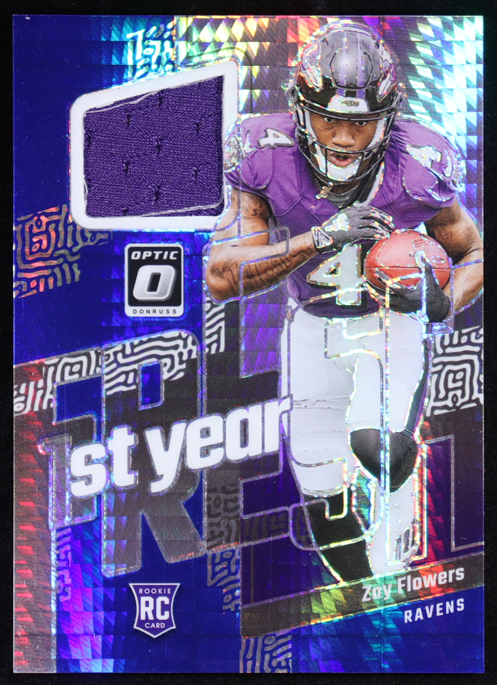 Zay Flowers 2023 Donruss Optic First Year Fresh Jerseys Blue Hyper #42 RC