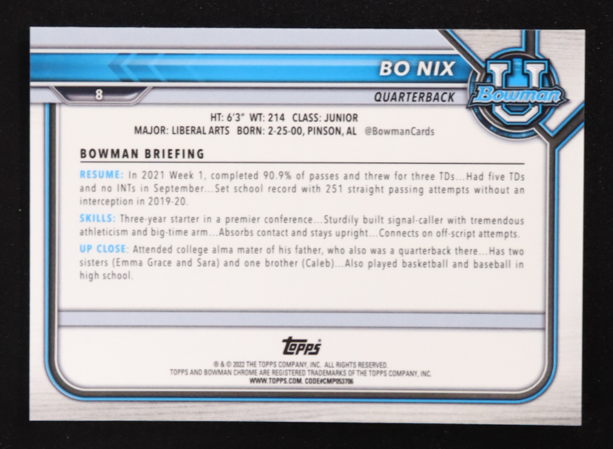 Bo Nix 2022 Bowman University Chrome Refractors #8 RC