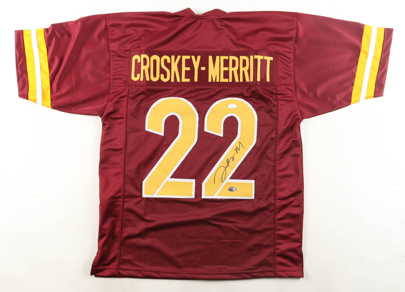 Custom jersey with everything sewn on, size XL. Hand-signed by Jacory Croskey-Merritt.