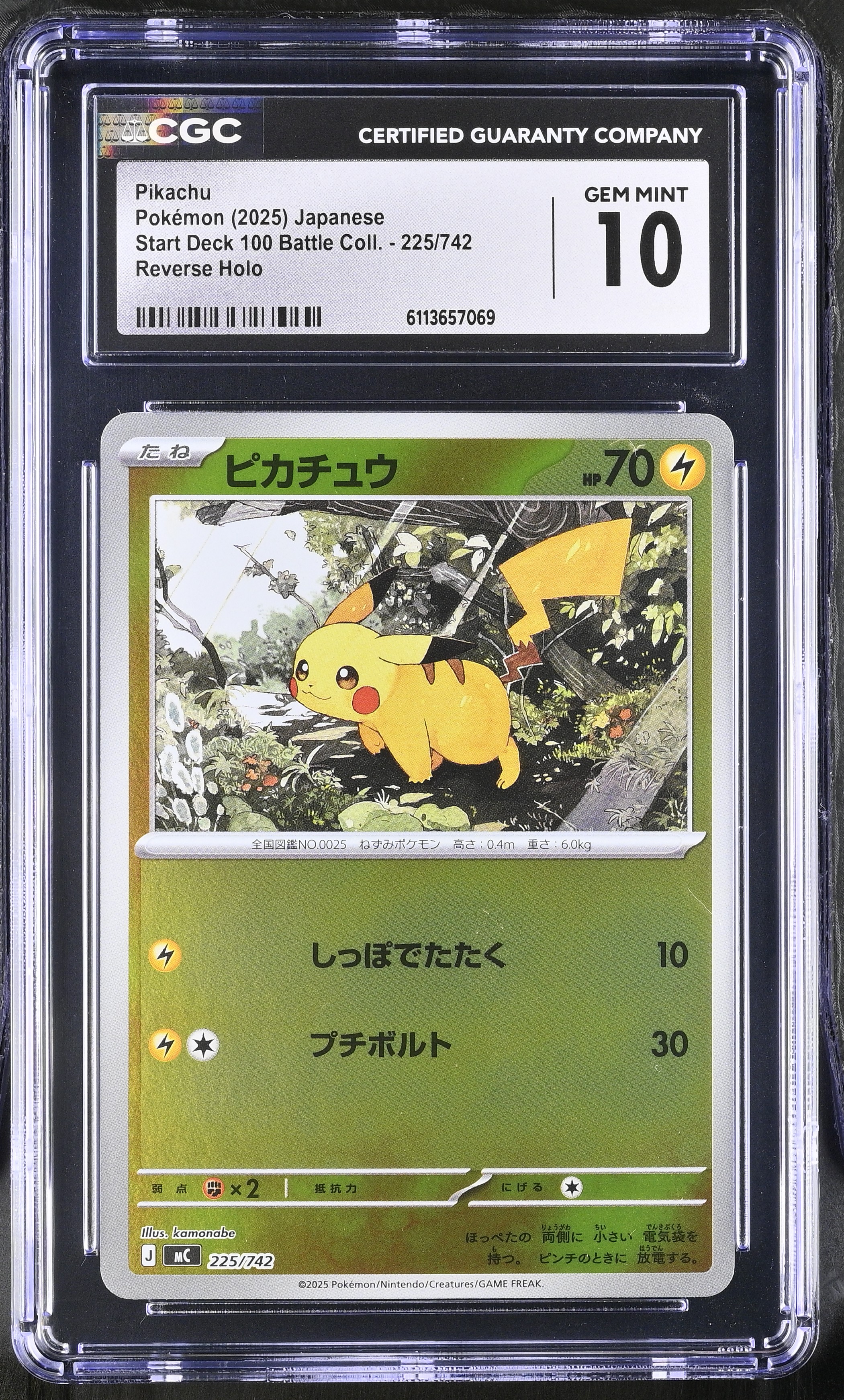 Pikachu 2025 Pokemon Start Deck 100 Battle Coll. Japanese Reverse Holo #225/742 (CGC 10)