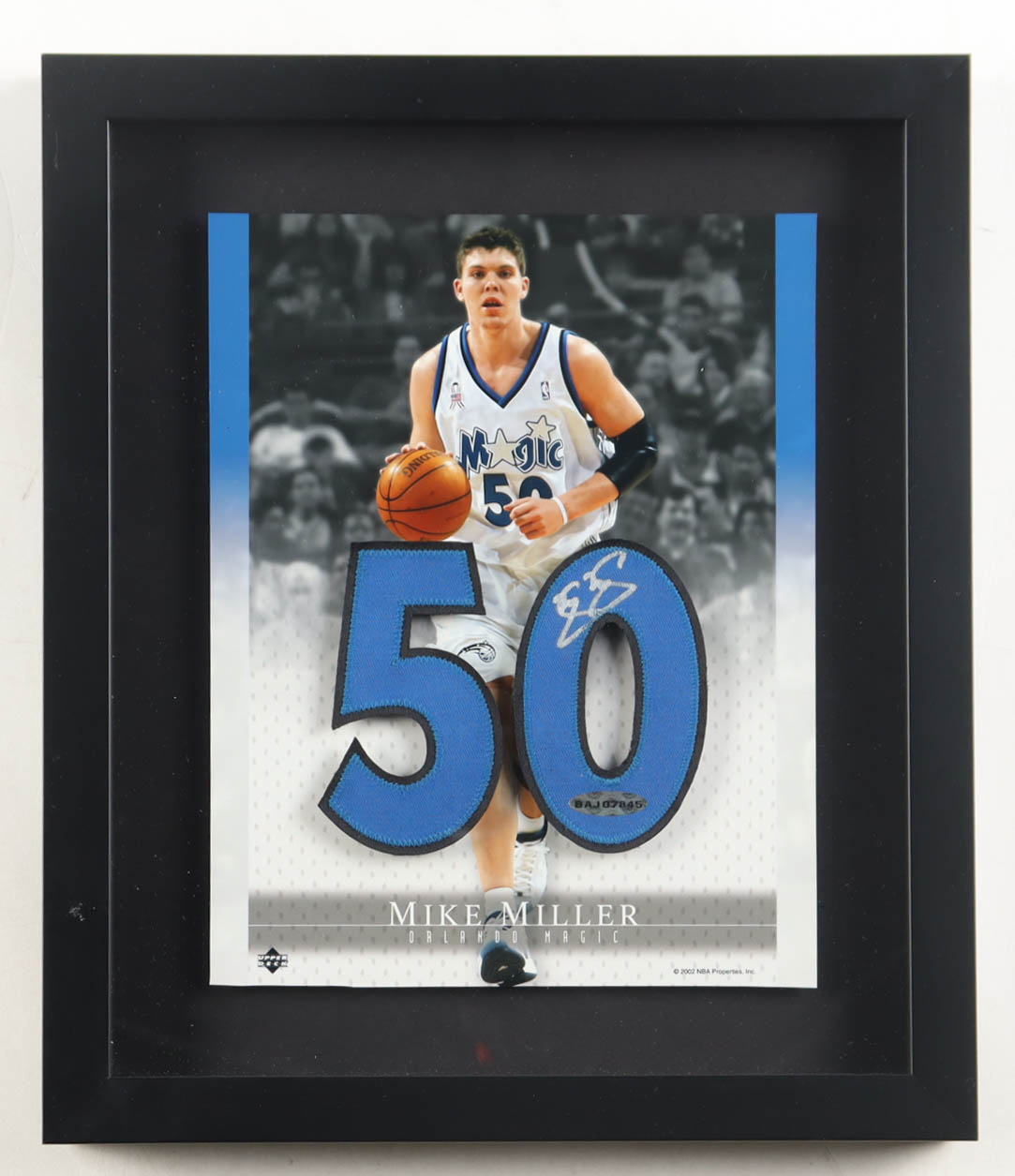 Custom frame measures approximately 12" x 14" in size and features a jersey number patch that has been hand-signed by Mike Miller.