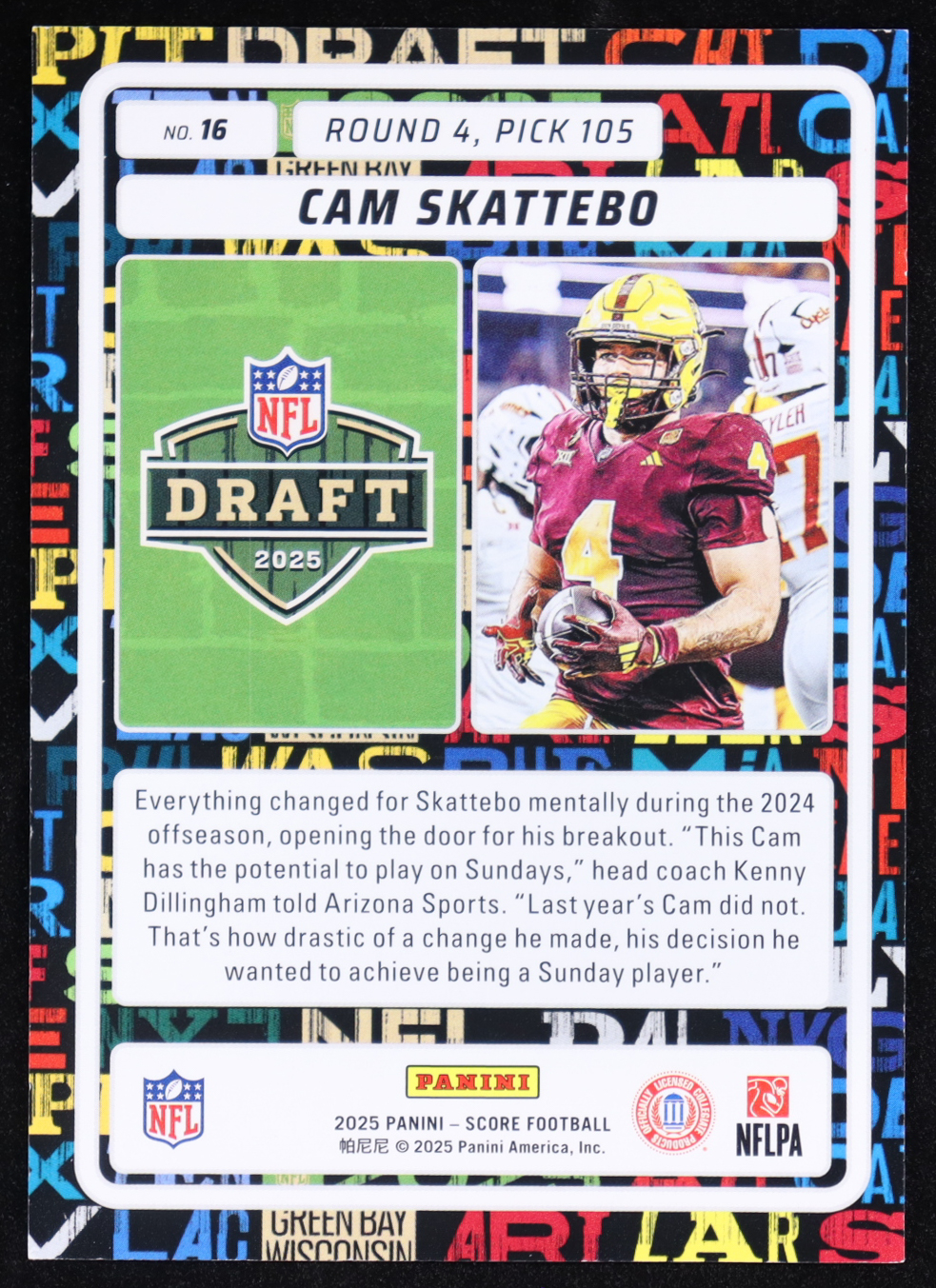 Cam Skattebo 2025 Score NFL Draft #16 RC