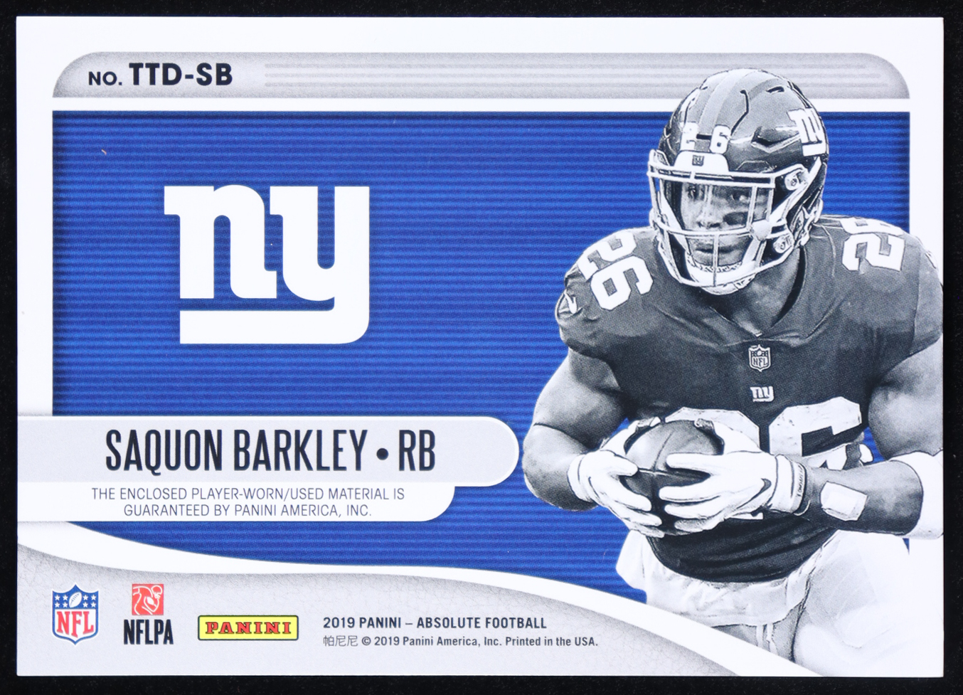 Saquon Barkley 2019 Absolute Tools of the Trade Dual Materials Prime #5 #07/25